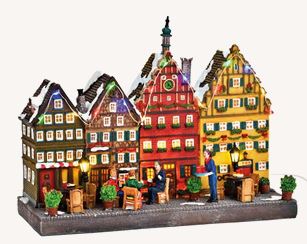mit LED-Beleuchung, div. Figuren, Laterne, Karussell, Kutschen und Weihnachtsbaum drehen sich,
