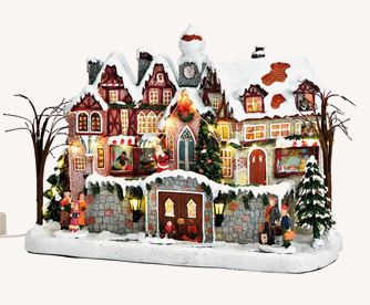 Winterlandschaft mit LED-Beleuchtung, Netzteil-Adapter und versch. Melodien (abstellbar)
